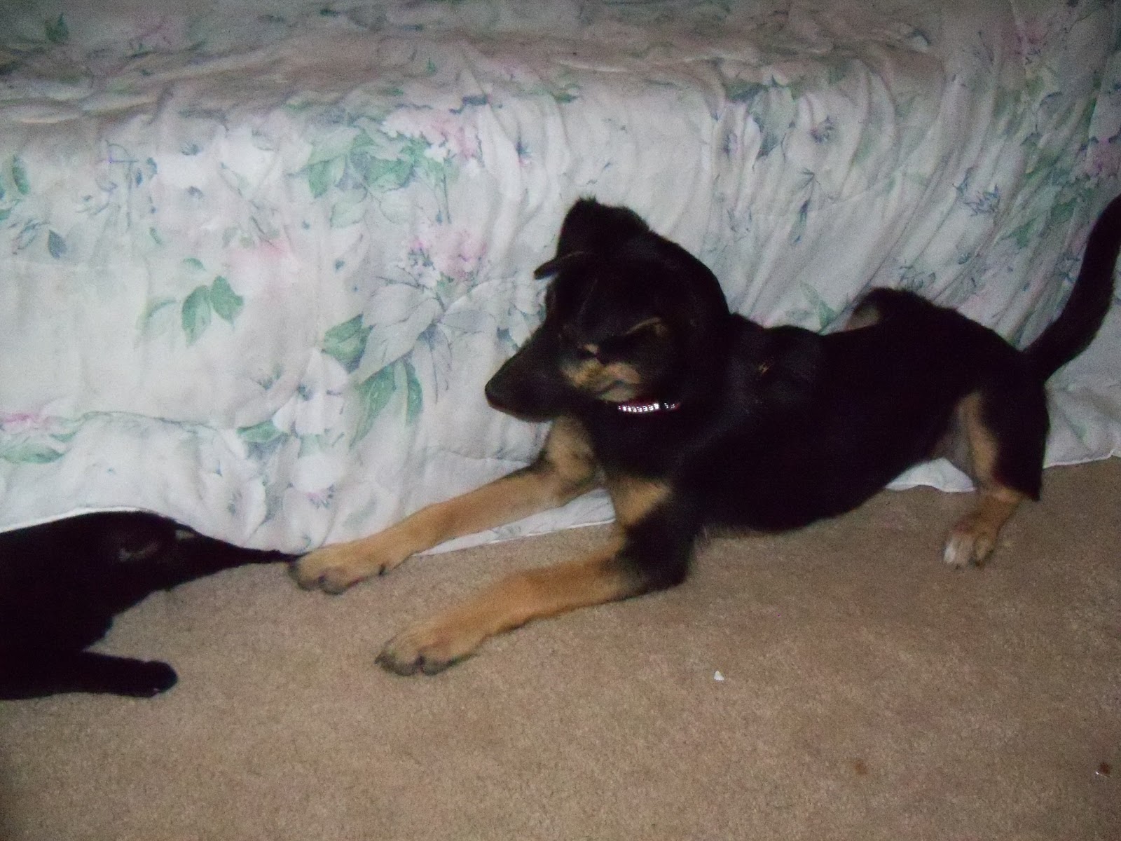 Our new puppy, Ziva, playing with our black cat, Wiley. Check out more about Ziva at my blog, http://thepuppytale.blogspot.com/